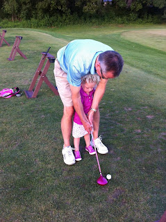 My Dad and Bob took Maddie to the golf range to hit some balls. So cute:)