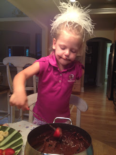 My Mom made some delicious chocolate fondue! Maddie ate is up!